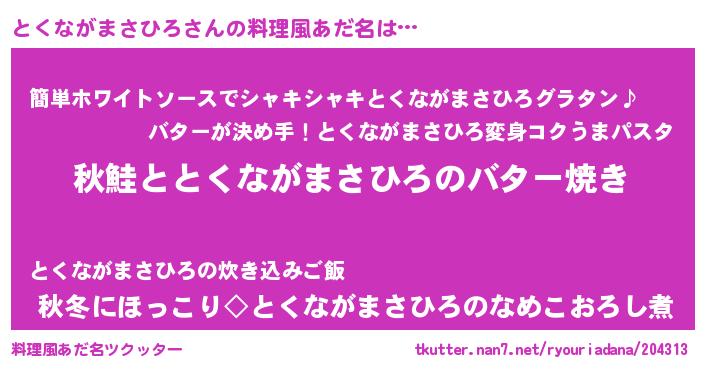 | ヘコむあだ名 | 『とくながまさひろ(笑)』『とくっちょ』 |