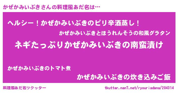 | 胡散臭い通販商品みたいなあだ名 | 『億万長者になれるブレスレット…その名も「かぜかみいぶき」』 |