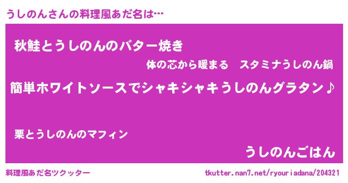 | 女子向けラノベタイトル風あだ名 | 『うしのん様がみてる』 |