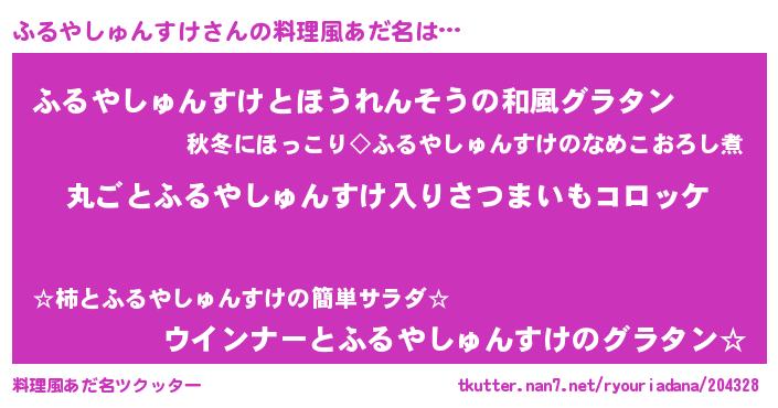| 女子向けラノベタイトル風あだ名 | 『乙女ゲームの破滅フラグしかない悪役ふるやしゅんすけに転生してしまった…』 |