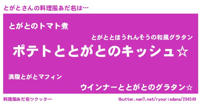 | 胡散臭い通販商品みたいなあだ名 | 『伝統あるサプリメント…その名も「とがと」』 |