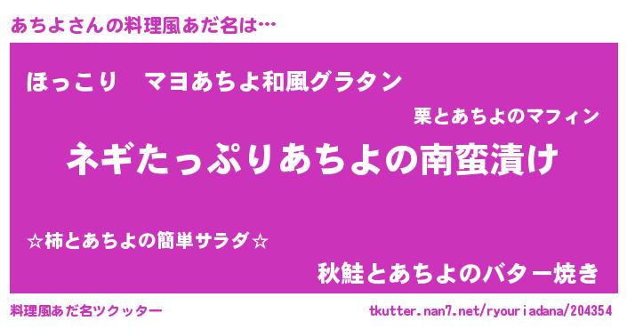 | 意味不明あだ名 | 『ペロリンあちよ』『永久保存あちよ』 |