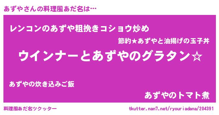 | 意味不明あだ名 | 『あずやフォーエバー』『自称あずや』 |