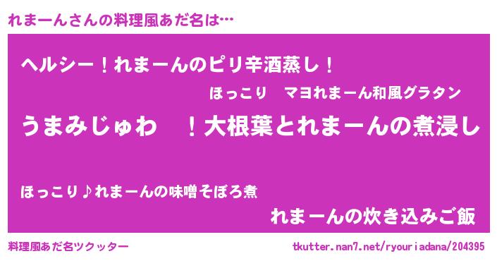 | 意味不明あだ名 | 『れまーんフォーエバー』『自称れまーん』 |