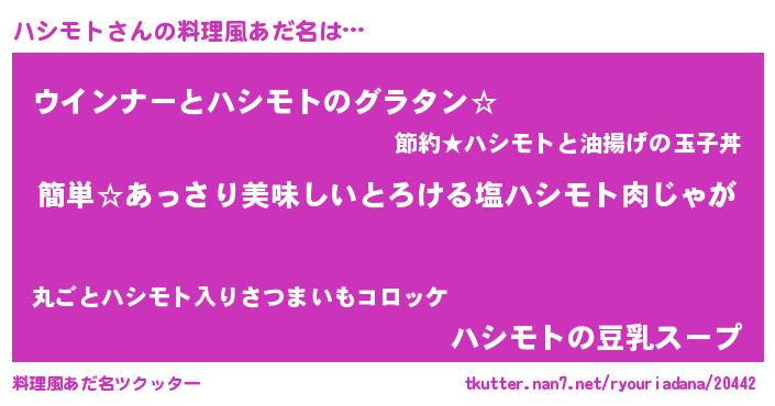 | 胡散臭い通販商品みたいなあだ名 | 『前代未聞の健康食品…その名も「ハシモト」』 |