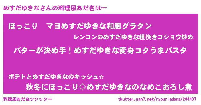 | 欧米人風あだ名 | 『ダニエルめすだゆきな』 |