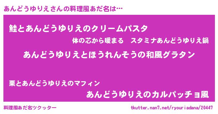 | 女子向けラノベタイトル風あだ名 | 『あんどうゆりえの玉の輿計画!』 |