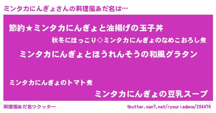 | 恥ずかしいあだ名 | 『プリティーミンタカにんぎょ』 |