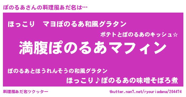 | 意味不明あだ名 | 『永久保存ぽのるあ』『ペロリンぽのるあ』 |