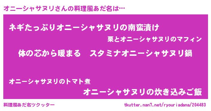 | 男性向けラノベタイトル風あだ名 | 『やはりオニーシャサヌリの青春ラブコメはまちがっている 』 |
