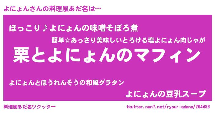 | 意味不明あだ名 | 『ペロリンよにょん』『永久保存よにょん』 |