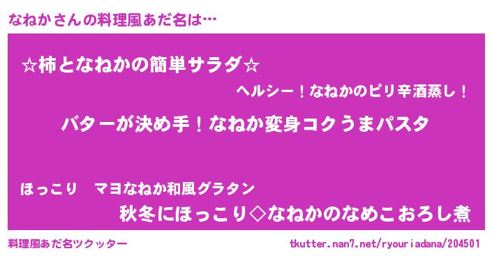 | 女子向けラノベタイトル風あだ名 | 『なねか恋絵巻』『横柄なねかと宰相陛下』 |