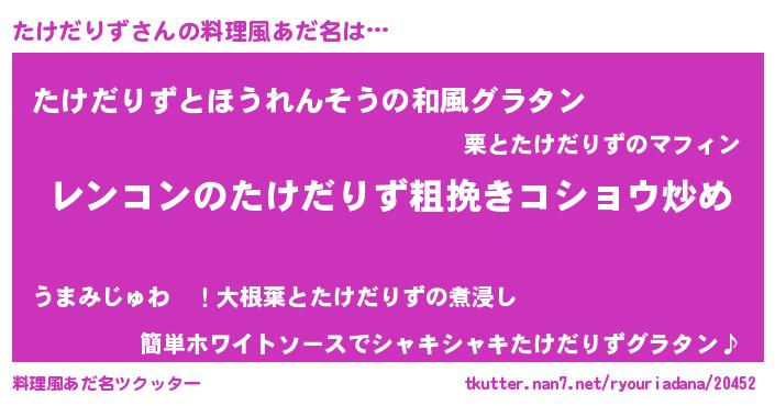| 意味不明あだ名 | 『自称たけだりず』『ニラ科たけだりず属』 |