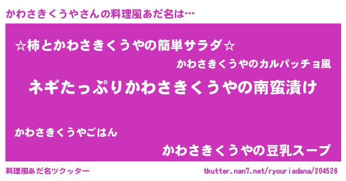 | 男性向けラノベタイトル風あだ名 | 『カワサキクウヤアートオンライン』 |