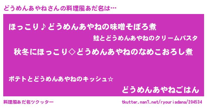 | 男性向けラノベタイトル風あだ名 | 『どうめんあやねに滅ぼされるだけの簡単なお仕事です』 |
