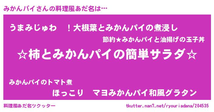 | 男性向けラノベタイトル風あだ名 | 『緋弾のミカンパイ』『みかんパイの憂鬱』 |
