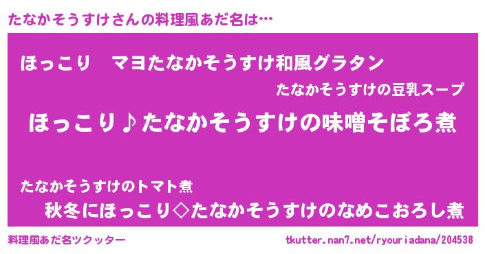 | 女子向けラノベタイトル風あだ名 | 『(仮)たなかそうすけのやんごとなき事情』 |