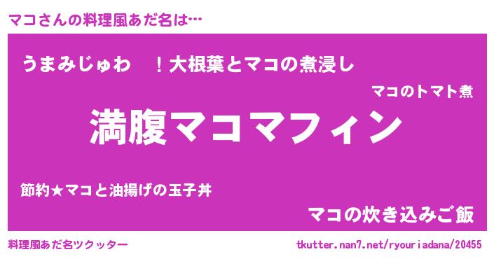 | 女子向けラノベタイトル風あだ名 | 『異世界で失敗しない100のマコ』 |