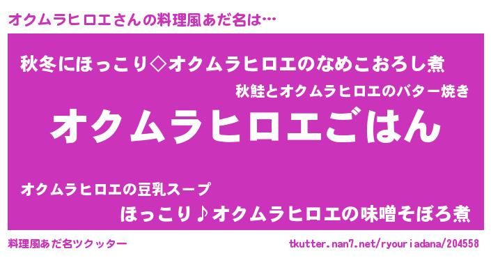 | ヘコむあだ名 | 『オクにゅー』『オクムラヒロエ(笑)』 |