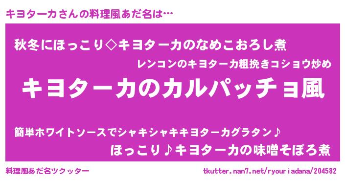 | 意味不明あだ名 | 『住所不定無職キヨターカ(14歳)』 |