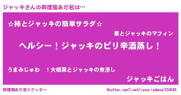 | 男性向けラノベタイトル風あだ名 | 『Re:ジャッキから始める異世界生活』 |