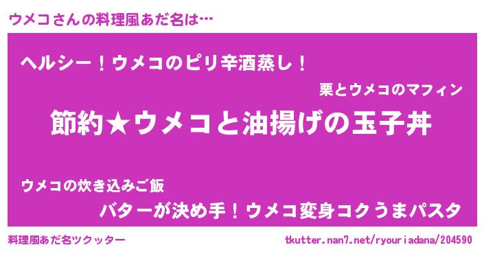| 男性向けラノベタイトル風あだ名 | 『ウメコの憂鬱』『はたらくウメコさま!』 |