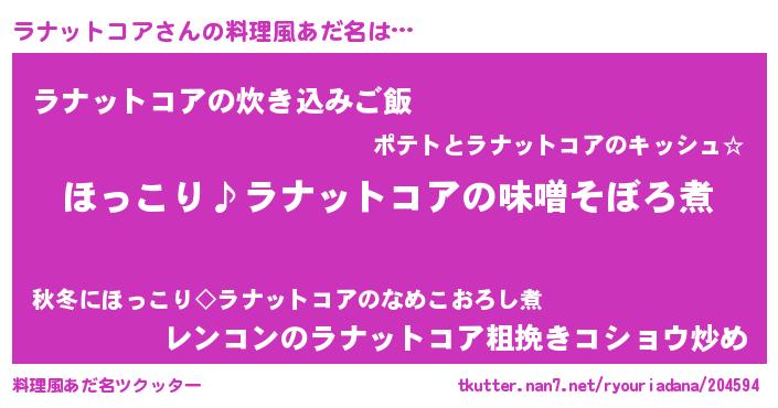| ヘコむあだ名 | 『ラナもー』『ラナを』『なまこ酢』 |