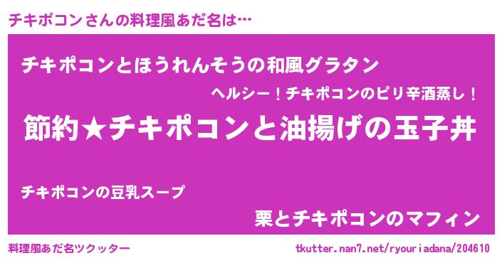 | ヒーロー風カッコイイあだ名 | 『スーパーチキポコン』『黄金騎士チキ』 |