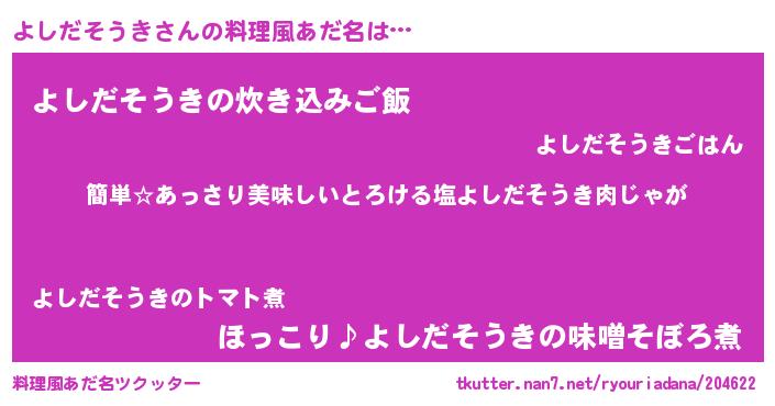 | 意味不明あだ名 | 『永久保存よしだそうき』 |