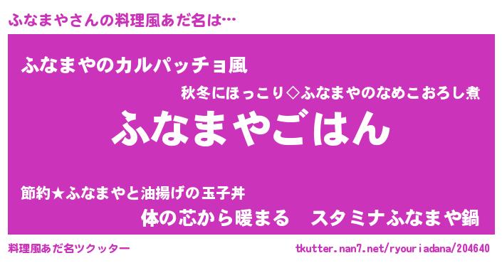 | 男性向けラノベタイトル風あだ名 | 『フナマヤスレイヤー』『ふなまやの憂鬱』 |