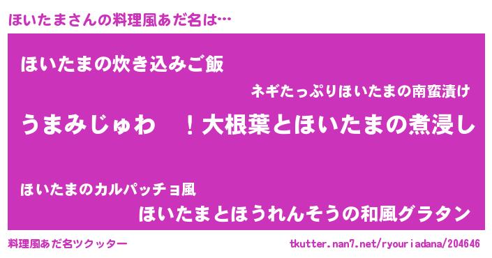 | 欧米人風あだ名 | 『ほいたまクリステル』 |