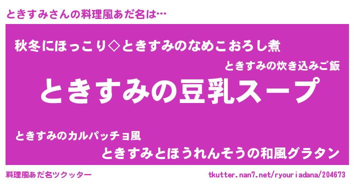 | ポケモン風あだ名 | 『ヒトキスミ』『トキゴンZ』 |