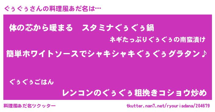 | ヘコむあだ名 | 『ぐぅぷりん』『つくし』『ぐぅもー』 |