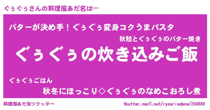 | ヘコむあだ名 | 『ぐぅぐぅ(震え声)』『なまこ酢』 |