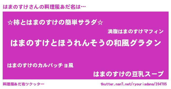 | 男性向けラノベタイトル風あだ名 | 『転生したらはまのすけだった件』 |