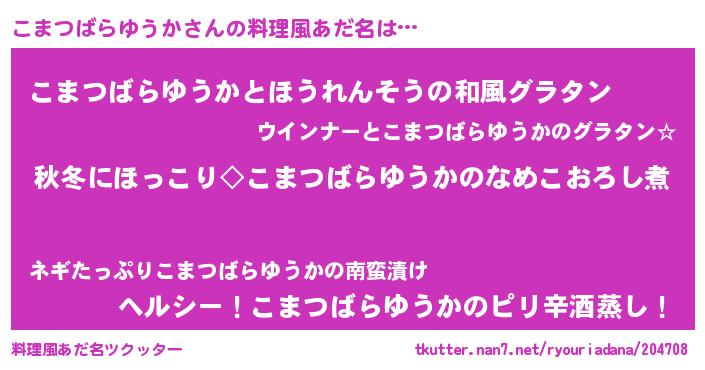 | ヒーロー風カッコイイあだ名 | 『最強戦士コマツバラユウカ』 |