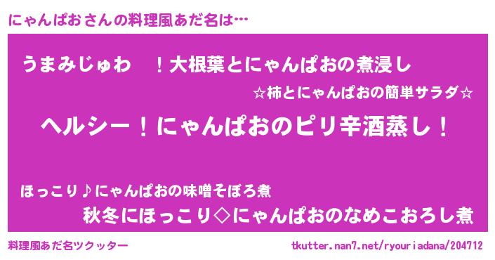 | 男性向けラノベタイトル風あだ名 | 『Re:にゃんぱおから始める異世界生活』 |