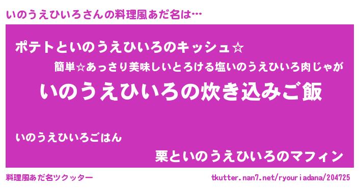 | 男性向けラノベタイトル風あだ名 | 『うちのいのうえひいろが世界を掌握している!』 |
