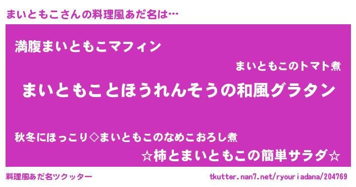 | 男性向けラノベタイトル風あだ名 | 『転生したらまいともこだった件』 |