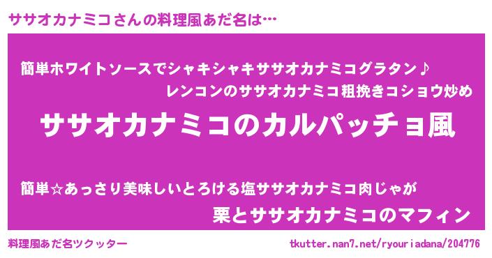 | ヘコむあだ名 | 『ササっ子』『ササオカナミコ(笑)』 |