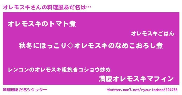| 男性向けラノベタイトル風あだ名 | 『オレモスキに滅ぼされるだけの簡単なお仕事です』 |