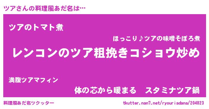 | 男性向けラノベタイトル風あだ名 | 『魔法科高校のツア』『ツアの憂鬱』 |