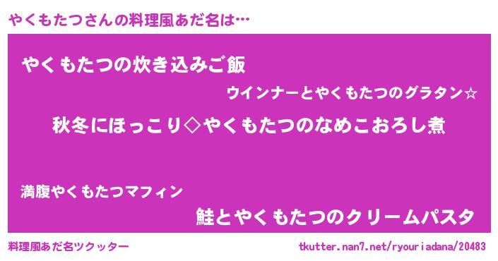 | ヘコむあだ名 | 『酢こんぶ』『やくもたつ(笑)』 |