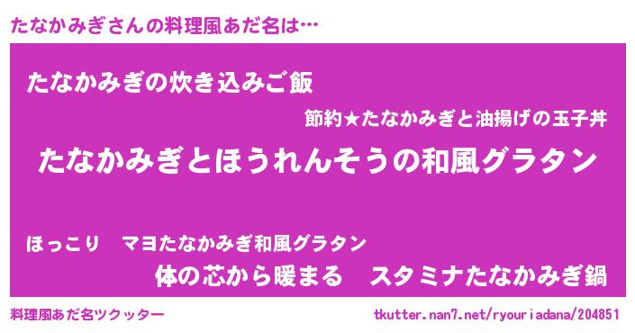 | ポケモン風あだ名 | 『タナキング』『メロタッナ』 |