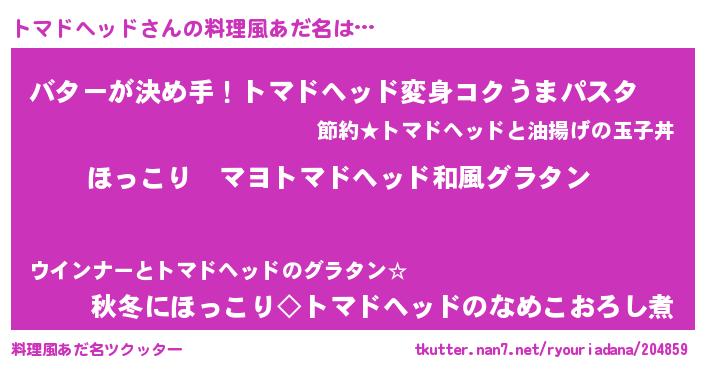 | 男性向けラノベタイトル風あだ名 | 『この素晴らしい世界にトマドヘッドを!』 |