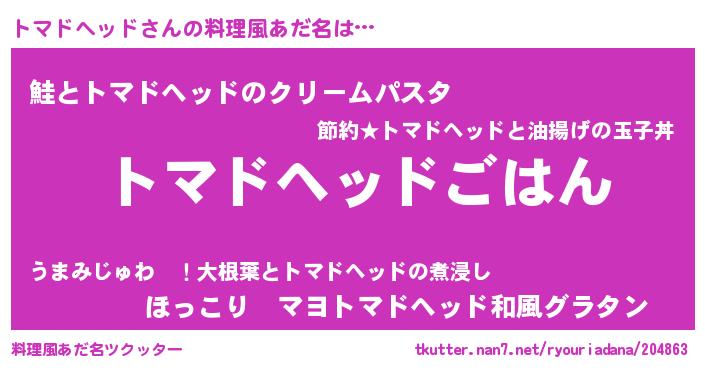 | 男性向けラノベタイトル風あだ名 | 『トマドヘッドスレイヤー』 |
