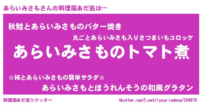 | ヘコむあだ名 | 『あらいみさも(笑)』『あらにゅー』 |