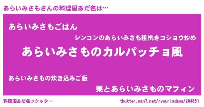 | 意味不明あだ名 | 『住所不定無職あらいみさも(85歳)』 |