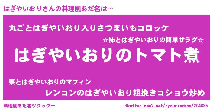 | ヘコむあだ名 | 『はぎやいおり(笑)』『はぎぷりん』 |