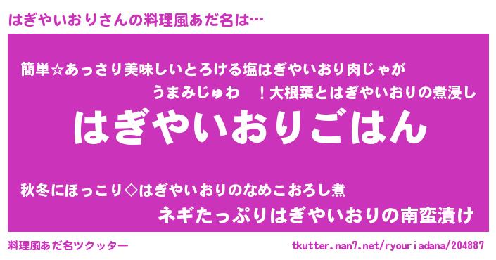 | 恥ずかしいあだ名 | 『はぎちん』『プリティーはぎやいおり』 |